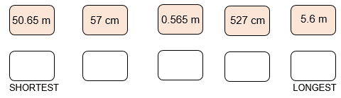 Write the following measurements in order, starting with the shortest.