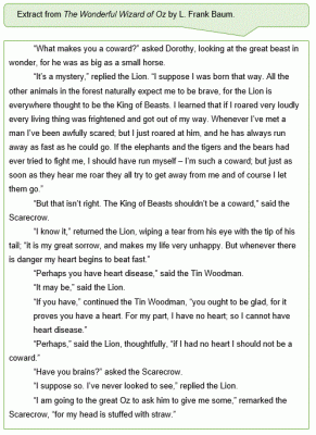 • Lion = “Do you think Oz could give me courage?”