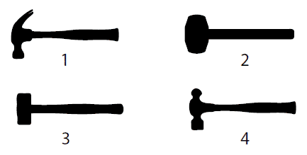 Which tool would you use to claw nails from wood, 1, 2, 3, or 4? Choose from options 1-4.