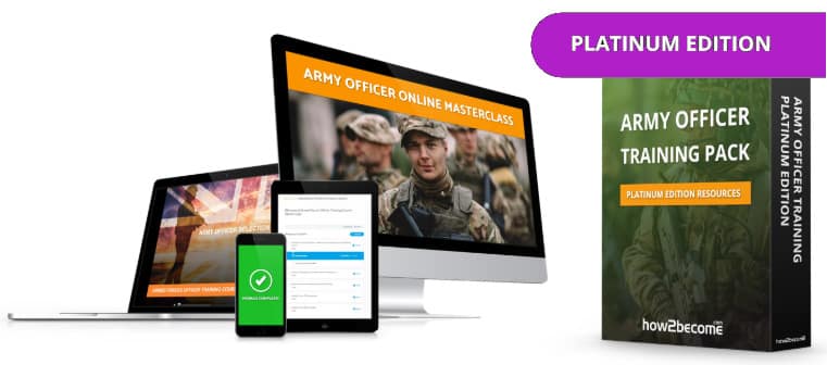 Both online masterclass packages include the full 45+ training modules that will prepare you for the entire selection process. However, the platinum edition is a complete, all-in-one resource, that contains all of our other Army Officer resources available on this site, including 100s of sample practice questions and our award-winning Army Officer guides.