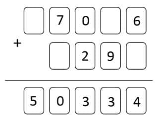 Fill in the missing numbers in order to make the calculation correct.
