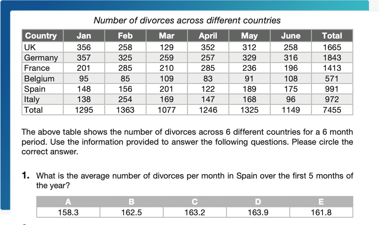 Numerical reasoning is one of the most popular test types and Ione which is part of the Network Rail Assessment Centre. This assesses candidates’ mathematical ability. The assessment will evaluate your capacity to comprehend and interpret numerical data presented in tables or graphs. This test consists of multiple questions and will come with a strict time limit to complete.