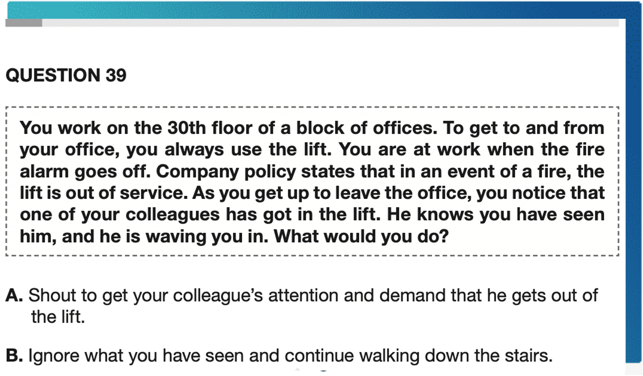The Network Rail Situational Judgement Test is designed to assess candidates against the values and code of ethics of the organisation. During this test you will be presented with a workplace scenario and four possible answers. Your task is to select what you believe is the best and the worst answer.
